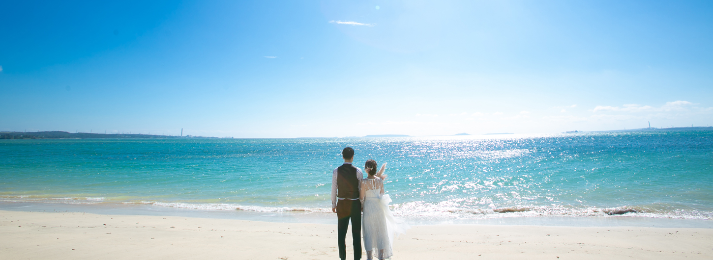 沖縄の太陽のもとで、新郎&新婦と素敵な友達だけ前で挙げる、プライベートな新しい結婚式
