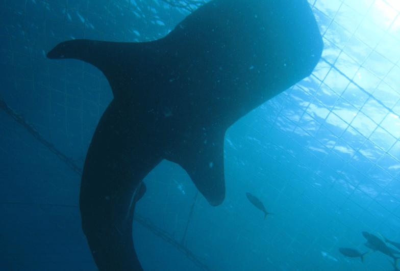 ジンベエザメがいる生簀(イケス)の海面上をシュノーケリング!