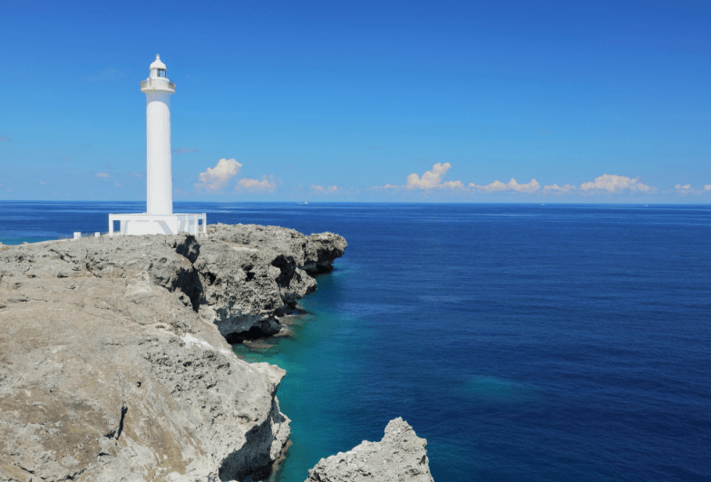 残波岬にある残波岬灯台は、高さ約31mを誇る白亜の灯台。